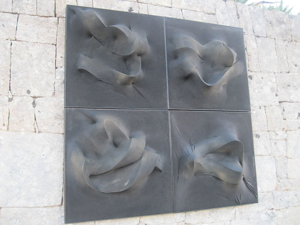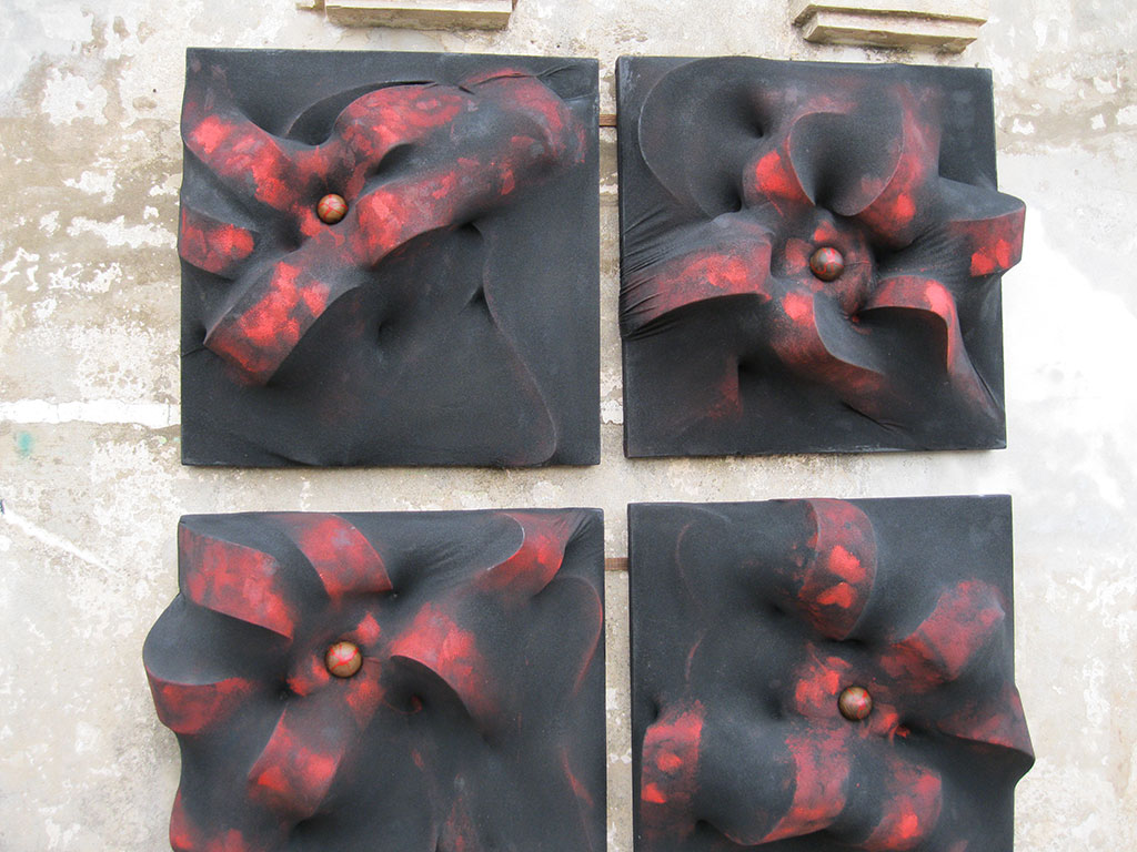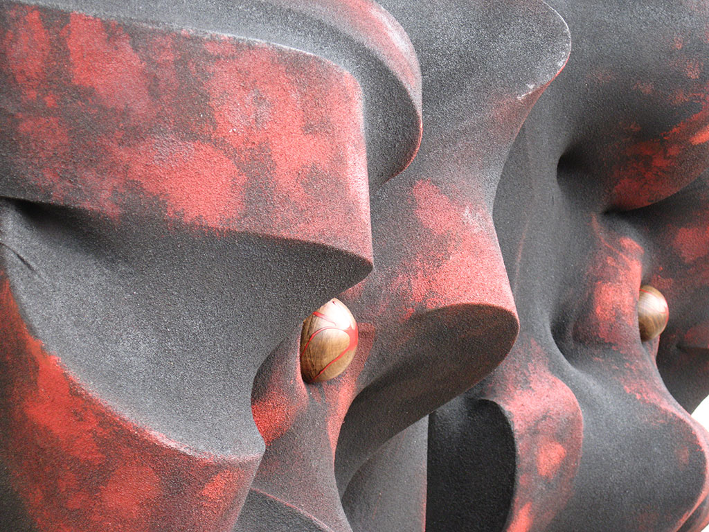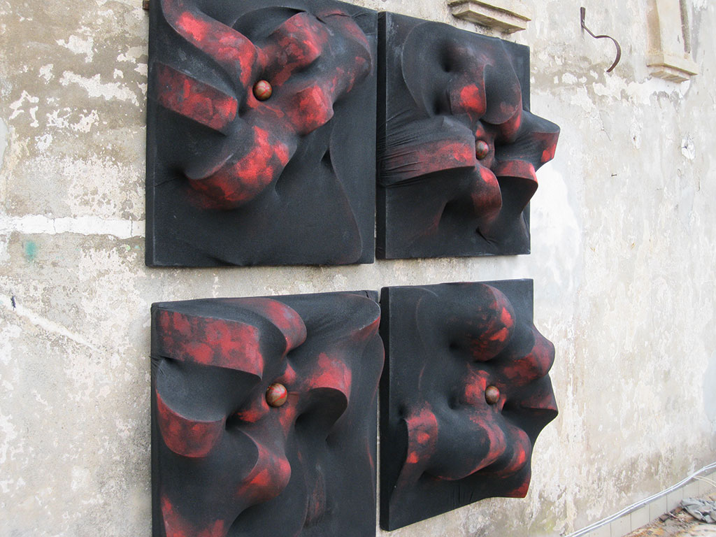 L’interazione tra i diversi materiali che sta la cifra dell’opera di Claudiocuboni. Nobili o di recupero, lavorati, scolpiti o lasciati naturali, i legni le corde o tessuti, resine, metalli o il marmo, si compenetrano in forme sinuose ma dure, indagando il rapporto e le intime relazioni che s’instaurano tra il materiale e le forme, esposti all’azione degli elementi.