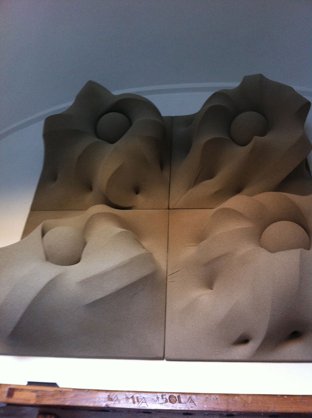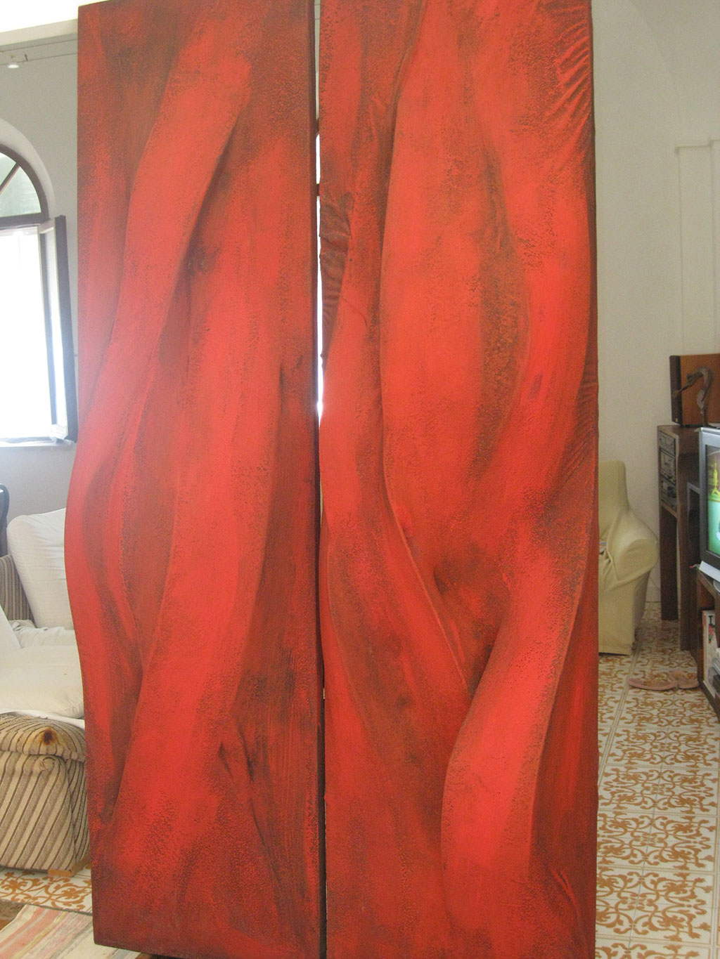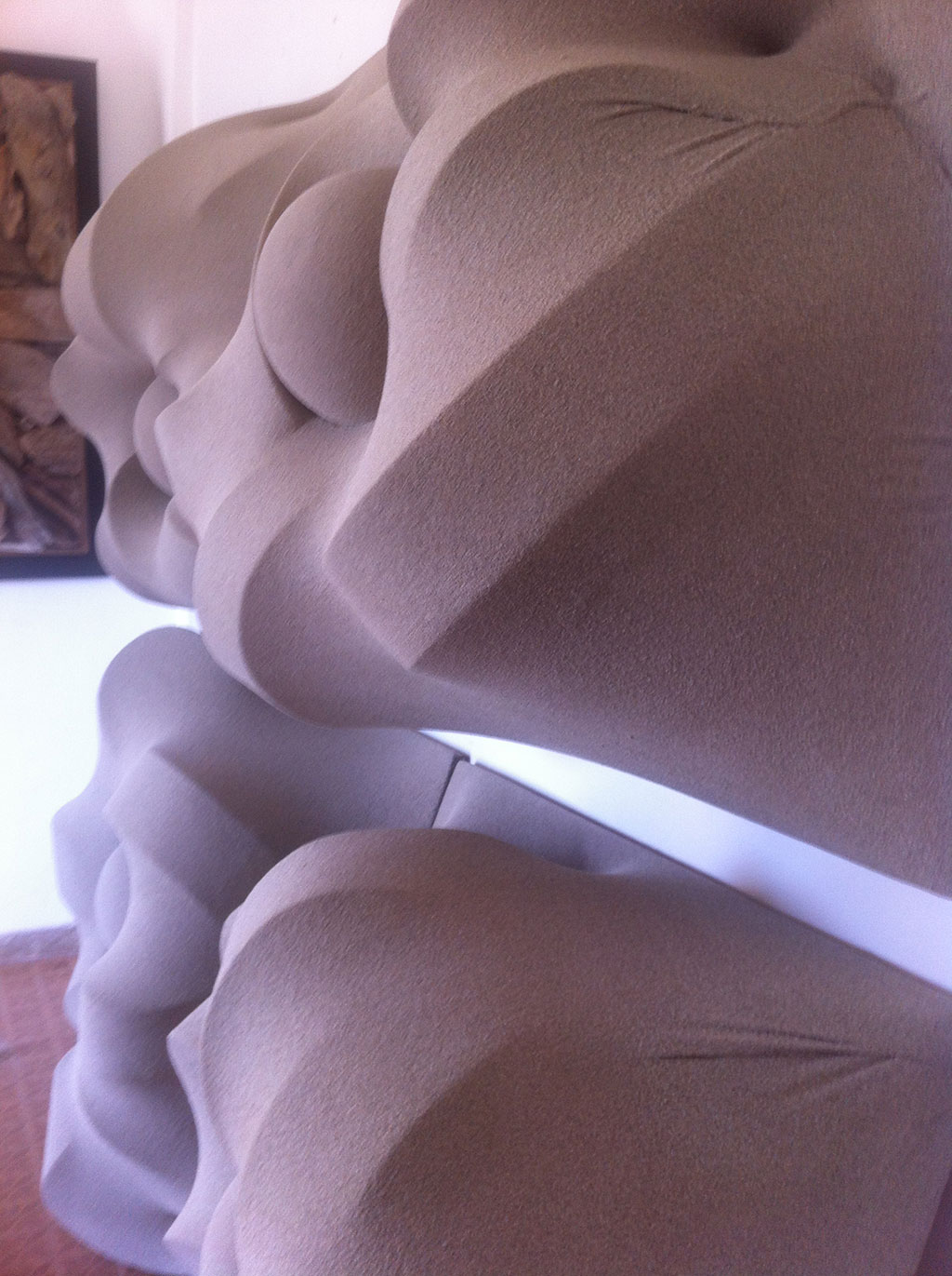 L’interazione tra i diversi materiali che sta la cifra dell’opera di Claudiocuboni. Nobili o di recupero, lavorati, scolpiti o lasciati naturali, i legni le corde o tessuti, resine, metalli o il marmo, si compenetrano in forme sinuose ma dure, indagando il rapporto e le intime relazioni che s’instaurano tra il materiale e le forme, esposti all’azione degli elementi.